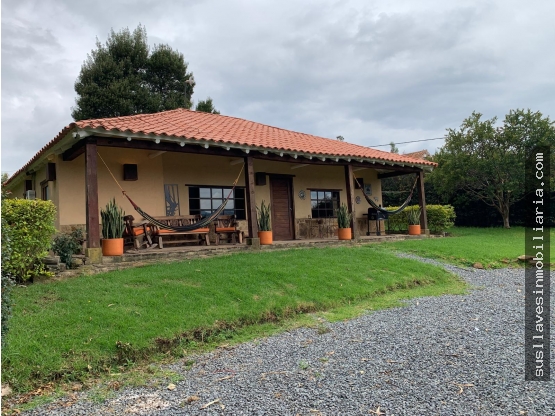 Linda cabaña ubicada a 4 km del pueblo, en vereda el Roble, cuenta con 3 habitaciones 2 baños y medio sala comedor cocina lote de 1.700 metros encerrada en malla eslabonada totalmente.