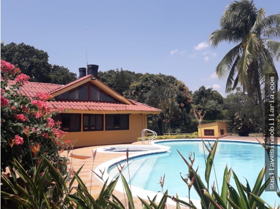 Casa campestre ubicada dentro de condominio de estrato 3 rural en un terreno de 5.600 metros. La propiedad consta de 320 metros aproximadamente, 5 alcobas cada una con baño privado y agua caliente, aire acondicionado y ventiladores. Así mismo closets de pared a pared en madera. Sala - comedor y cocinas integradas. Zona de lavandería. Corredores para hamacas, kiosko con servicios integrados, piscina, cancha de tenis en polvo de ladrillo, jardines, árboles frutales.